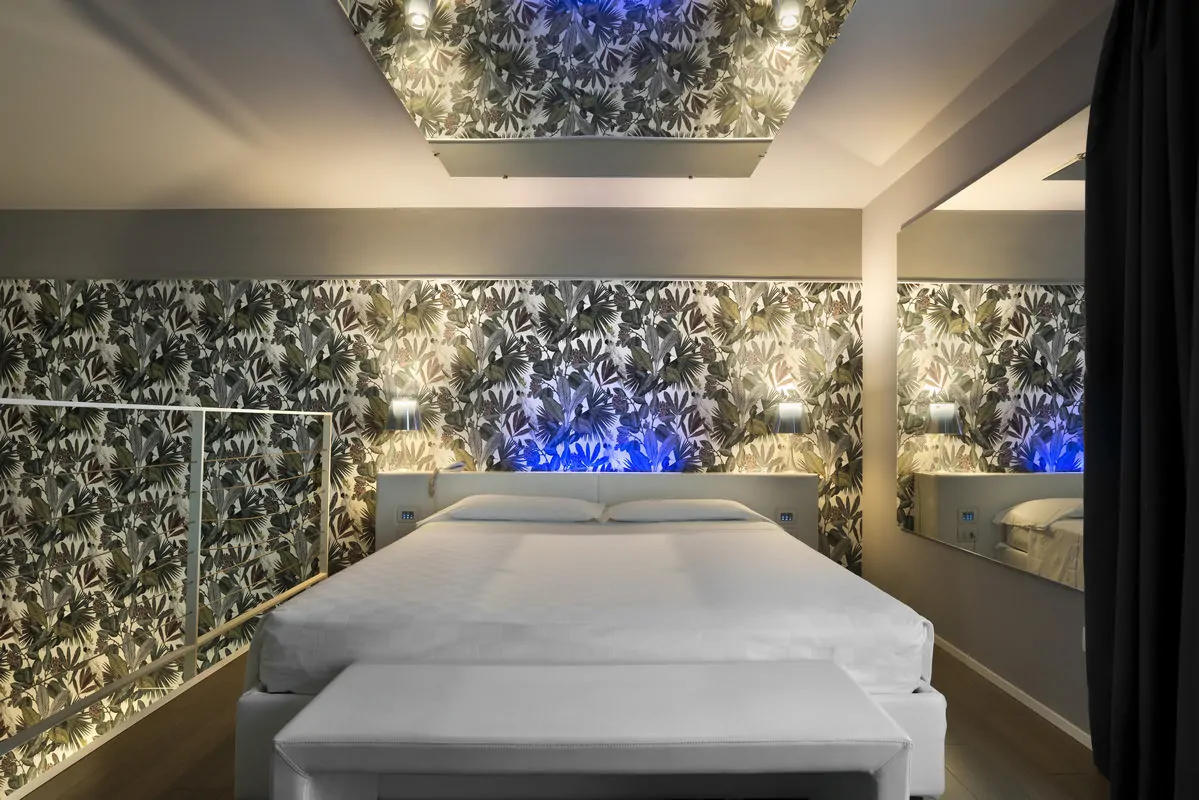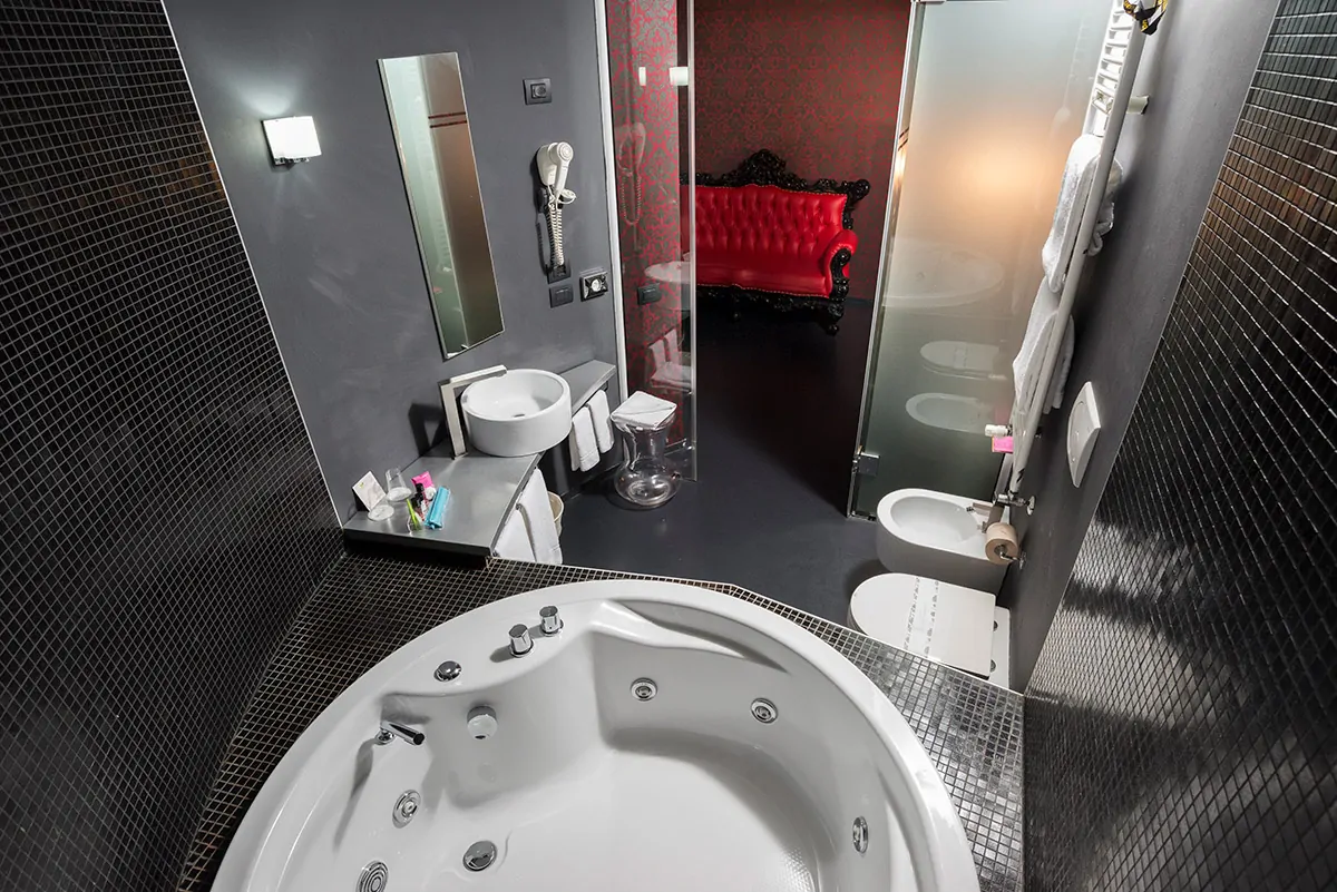 Le camere sono incantevoli spaziose e moderne. Studiate in ogni dettaglio consentono ai propri ospiti di vivere momenti unici in assoluta tranquillità. Ogni desiderio viene esaudito attraverso un’ampia scelta di differenti ambientazioni dotate di giochi di specchi, luci, vasche idromassaggio, ampie docce e un eccellente servizio in camera attivo tutti i giorni dalle 7:00 alle 24:00.